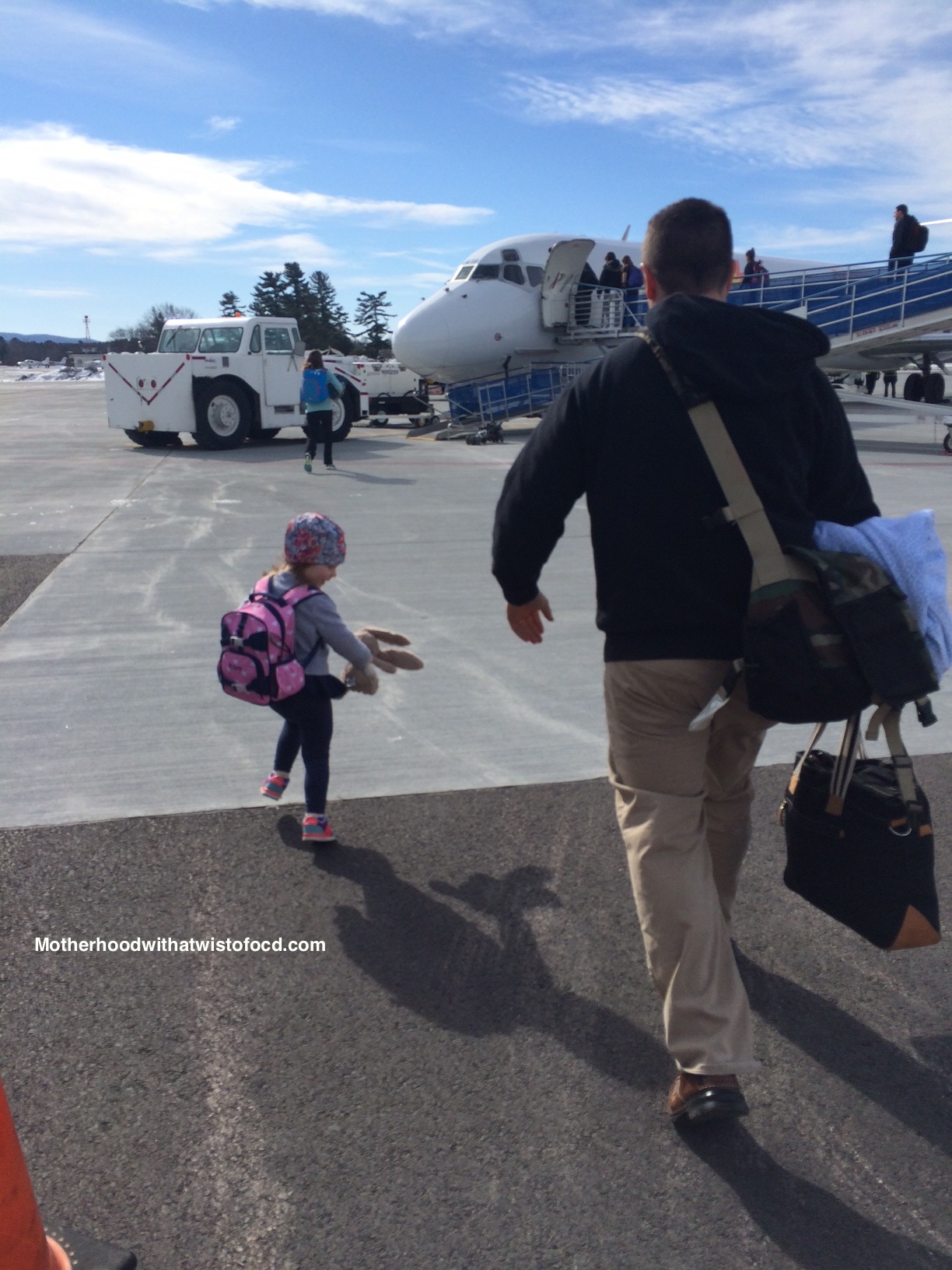 Traveling with a toddler and an infant is a bit more complicated. Getting checked in for our flight tIMG_4095ook almost 40 minutes. I could blame the long lines or the guy behind the counter, but in reality, the cause was more likely our two large suitcases, two car seats, stroller, and 2 ½ year old, who insisted on jumping up and down off the luggage scale, when taking a break from zig-zagging between other passengers, and pulling on the ropes which designate where the lines should form. All while singing “Let It Go,” from Frozen, at the top of her lungs.